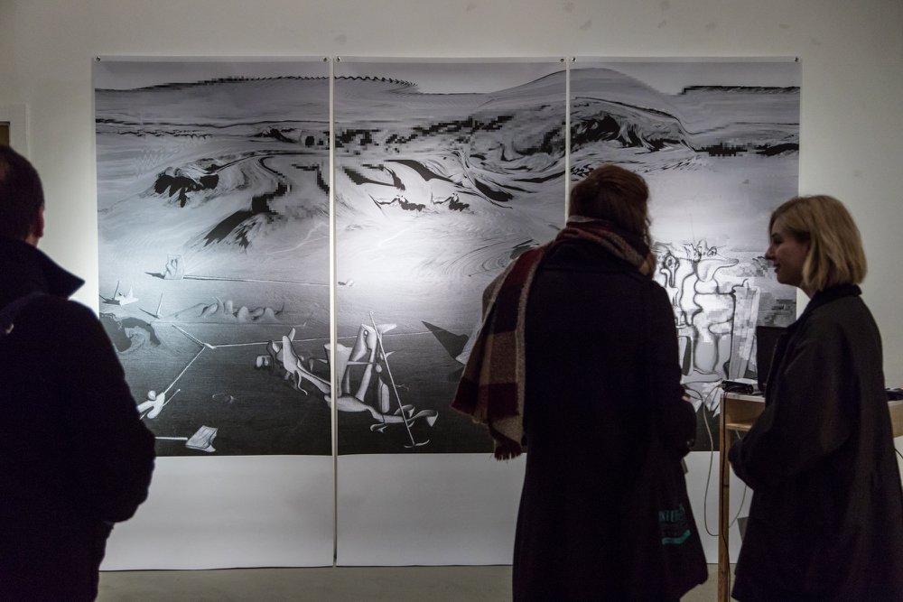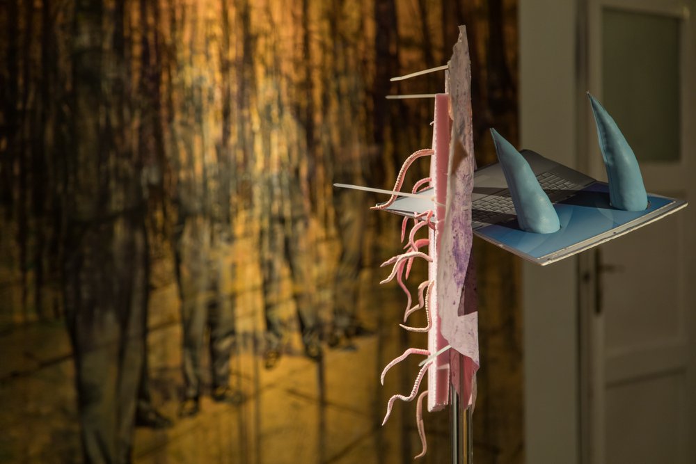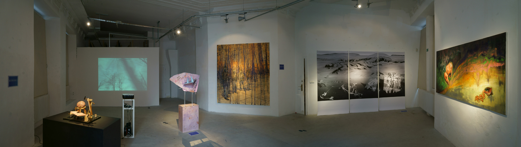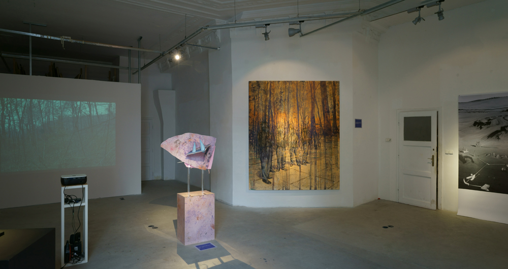Catastrophe exerts an irresistible, exasperating allure upon us. „With allure”, writes Graham Harman, „the human tends toward the mineral kingdom once more.” The FUTURUM PERFECTUM exhibition attempts to uncover the content of the postapocalyptic paradox we have outlined above, in the context of an inorganic visual poetic context. In the center of the exhibit is Péter Lichter’s Fagyott május, an experimental horror film that reflects upon the media strategies of the Budapest School of horror painting. Over the past decade the Budapest School has engaged in subversive representations of bodies, refining a truly dazzling practice of aesthetic dehumanization, but Lichter’s film presents viewers with a new dimension of horror aesthetics, for what we see before us is a landscape evacuated of all human presence. What we are confronted with is an experiment in Anthropocene art, art without human protagonists. The exhibition presents us with an ambivalent tension between aesthetization and materiality, as the ethereal, artificial atmosphere of Lichter’s film is interestingly brought into contrast with a very real and palpable materiality. Within these aestheticized landscapes residual forms are contrasted with the apparent formlessness of nature, albeit we cannot forget that materiality itself is never clean, pure or untouched. In their various ways, the works of Márk Fridvalszki, Attila Szűcs, Zsófia Keresztes, László Győrffy and Csaba Kis Róka represent materiality as always already constructed, artificial and impure. Matter is dirty, hence art attuned to the call of matter must rid itself of any idealistic attachment to a supposedly untouched, unblemished natural realm. Through a process of decay and decline, nature exposes the simulation of landscapes through a proliferation of material and objective simulations. No longer can we identify any essence within nature, a non-substantial morass already mixed together with technologies, codes, constructs and structures. Nature, landscape, matter: these are all nothing more than elements of a stage, a theater in which emptiness mimes itself into presence in the context of an aesthetic strategy, a performance within which the role of humans comes to be ever more restricted. Neither actors nor viewers, we are doomed to disappear from the theater of Being.