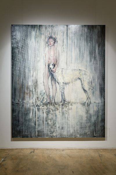 Attila Szücs, standing on a horizon, oil on canvas, 240x200cm. 2018