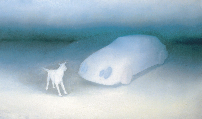 Addig is marad a helyi realitás, az egyéni jelen és jövõképek a szûkebb környezetrõl, a városról. Császár Péter fák tetejére épített faházai, Barakonyi Zsombor felvételei az éjszakai budapesti tetõkrõl, Beöthy Balázs videója a nappal, a városban tett motozásról. Vagy egy még szûkebb lencsével a nõi lét szimbolikus tárgyi elemeirõl Radák Eszter festõmûvész személyes környezetében, szobájában fellelhetõ nõi ruhákon és a divatmagazinok fotóiról látott öltözékek képein át.Általánosabb, és a szellemi közeg, a kontextus felé közelítõ Horváth Tibor Aerob címû videómunkája. Az otthont idézõ szekrényfogantyúk között a családi tévéképernyõk idõjárásjelentéseibõl ismert Aigner Szilárd beszél a kifejezés nehézségeirõl, nem az idõjárásról, kifordítva ezzel mindent a helyérõl, annál is inkább, hiszen mindez most a Klíma címû kiállítás kontextusába helyezõdik.Könnyed és üdítõ állomás Fodor János Kontextus – Komplexus címû mûve. A fémtáblán véletlenszerûen egymás mellé kerülõ fotók önmagukban is érdekes, néhol személyes, néhol talányos történeteket mesélnek, néha kikacsintanak a szomszéd képre vagy a melléjük firkantott feliratra, hogy együtt mást gondoljanak a világról, de alapvetõen kerülik a szigorú, görcsös kontextus-kreálást, és ezzel talán tiltakoznak is ellene.A mûvészeten belüli kérdéses és ellentmondásos szerepeket és fogalmakat vonultat fel Király András festményein. Az Art East West sorozatcímen belül a Nõmûvész, a Sztár, és a Stílusgyakorlatok alcímek a mûvészvilág kategorikus sztereotípiáit finom cinizmussal kommentálják, de a képeken látható keleti harcmûvészekkel való összekapcsolásuk már inkább az értelmezési lehetõségek sokféleségét húzzák alá.Iski Kocsis Tibor gyönyörûen megfestett, szarvascsaládot megörökítõ festményei – ha akarjuk – utalhatnak hazánkra vonatkozó éghajlati, klimatikus sajátosságokra is, de az állatok individualizálására törekvõ ábrázolása érdekesebb irányba terel.Környei Ágota személyek és helyzetek összekeverésével, szokatlan párosításával – futballcsapatot támogató nõ, adója 1%-án gondolkodó kislány – próbálja a társadalmi tudatosság sztereotípiáit felmutatni, de ezzel nem jutunk sem a szereplõk, sem az alkotó szándékához közelebb. Csontó LajosEgy illúzió áldozata lettél (részlet) • fotó: Rosta József |