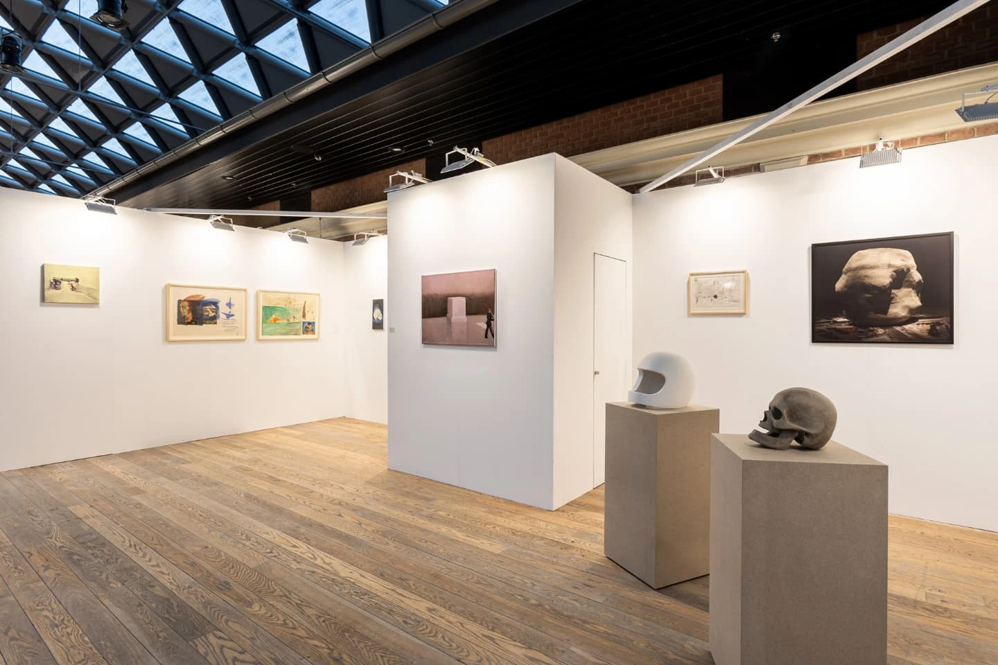 2025. február 6 – 9. genius lociBálna Budapest, 1093 Budapest, Fővám tér 11-12. A Deák Erika Galéria idén egy csoportos kiállítással készült az Art and Antique vásárra, standunkra a kortárs magyar képzőművészet három ikonikus, nemzetközileg is elismert alakját hívtunk meg. Míg Szűcs Attila a galéria művészköréhez tartozik, a Kis Varsót és Sugár Jánost kifejezetten erre a projektre kértük fel. A műtárgyak kiválasztása alapvetően a hely, a Bálna aktuális szellemiségére reflektál, a művek közötti összekötő kapocs egy a világot kritikusan szemlélő művészi attitűd. A kiállított festmények, rajzok és szobrok azt vizsgálják, hogy a kulturális és a politikai mítoszokat ma hogyan artikulálhatjuk. Mindegyik mű univerzálisan is értelmezhető, akár abszurdnak is tekinthető. Az üres sisak, a főtérre helyezett amorf kődarab, a szobor nélkül hagyott talapzat nyugtalanító valósága a hiány egyértelmű jelenlétére utal, miközben a kortárs létezés lehetséges alternatíváit, az emlékezet és az identitás művészeti, társadalmi és filozófia kérdéseit is vizsgálja.A Kis Varsó művész csoport 1994 óta dolgozik együtt. Műveik a történelmi emlékezettel foglalkoznak, a személyes nézőpontok és a kollektív narratívák ütköztetésével. Ebben a művész szerepét kiemelten vizsgálják, aki nem csak műveket hoz létre, hanem társadalmi helyzete által meghatározott résztvevő és egyben megfigyelő.Sugár János (sz. 1958) az 1980-as években tagja volt az Erdély Miklós vezette INDIGÓ csoportnak, művészeti tevékenységét a műfaji sokrétűség jellemzi. Műveinek mozgatórugója, hogy az általa és a társadalom által feltett kérdéseket vizualizálja. Emblematikus formai nyelve, anyaghasználata és filozófia-hangsúlyos művei elsősorban az identitás-problematika gondolatkörében, azon belül is a magyar társadalmi térben értelmezhetők legpontosabban.Szűcs Attila (sz. 1967, Miskolc) műveit a világ aktuális állapotára való reflektálás jellemzi, de művészetét az emlékezetdiskurzuson alapuló filozófiai áramlatok tengelyében is értelmezhetjük. Festményei sajátos perspektívából nyújtanak betekintést a technológia által vezérelt lét és az ősi ösztöneink közötti kettősségre. Képei egyszerre konkrétak és teoretikusak, melyeken valódi és képzeletbeli helyek, tárgyak, képek, metaforák és világnézetek találkoznak össze egymással, és ösztönzik nézőiket saját narratíváik létrehozására. |