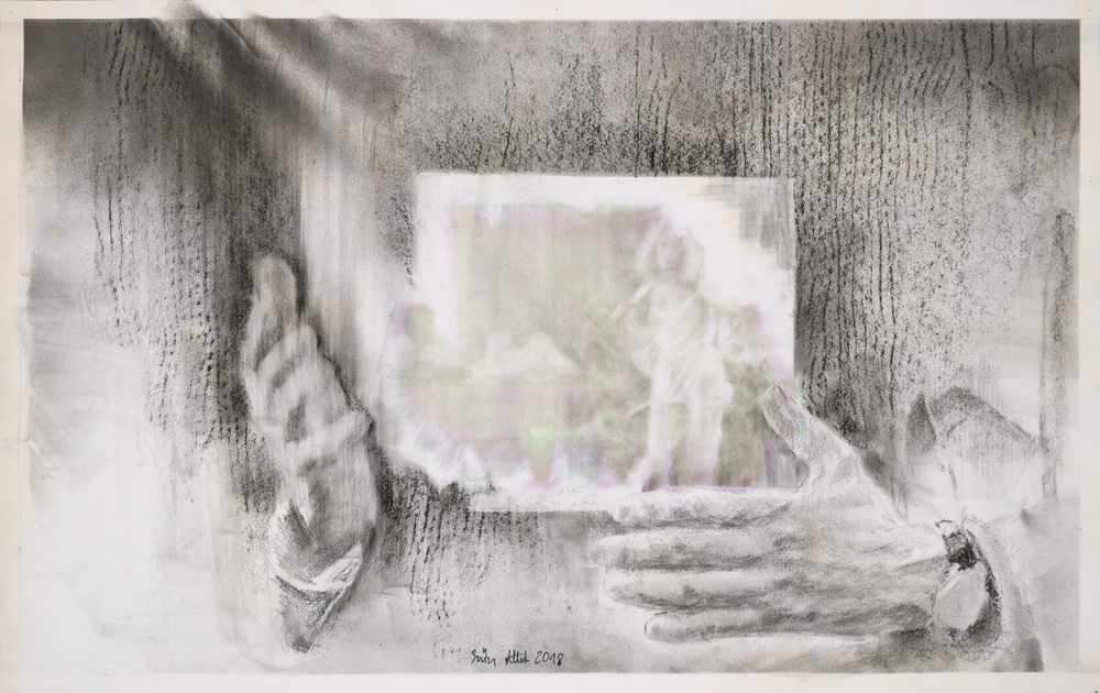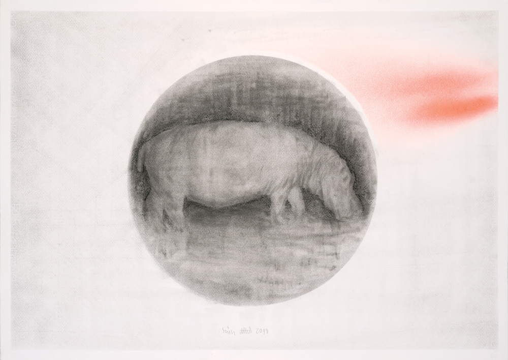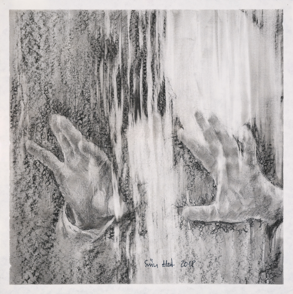 Drawing, graphite, charcoal and acrylic spray on paper, 95x94cm 2018 11 30