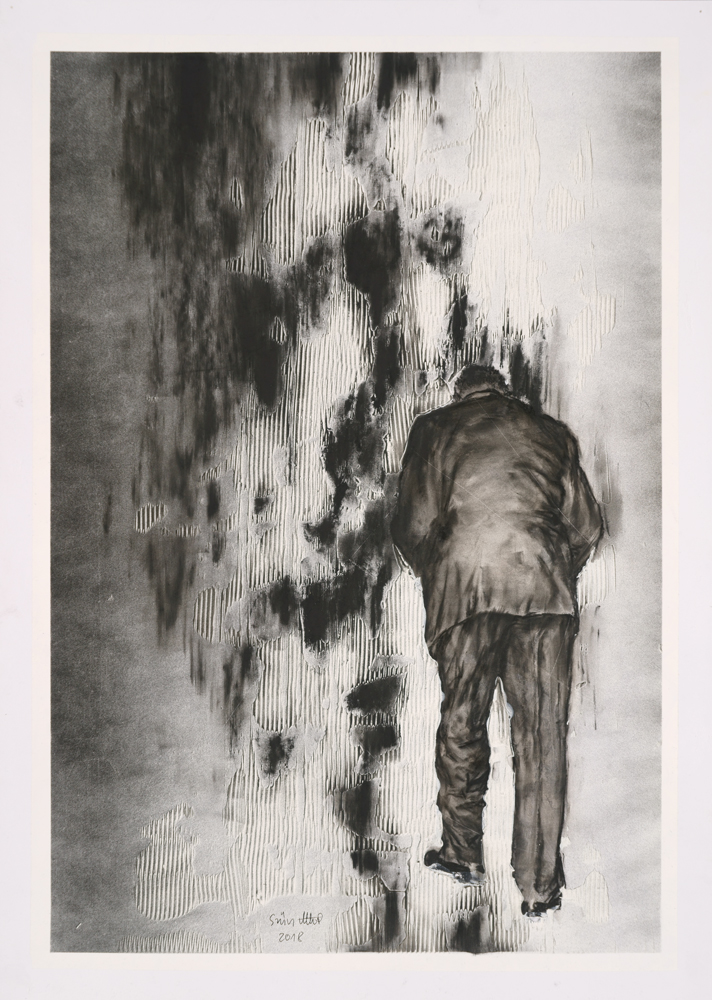 Drawing, graphite, charcoal and acrylic spray on paper, 108x54cm 2018 12 20