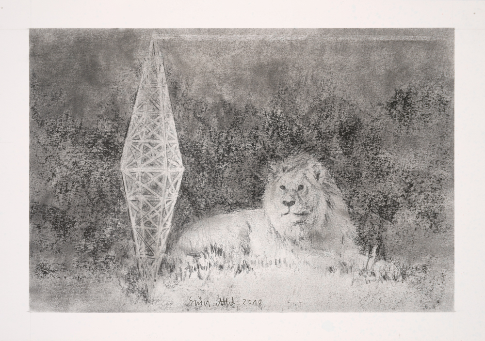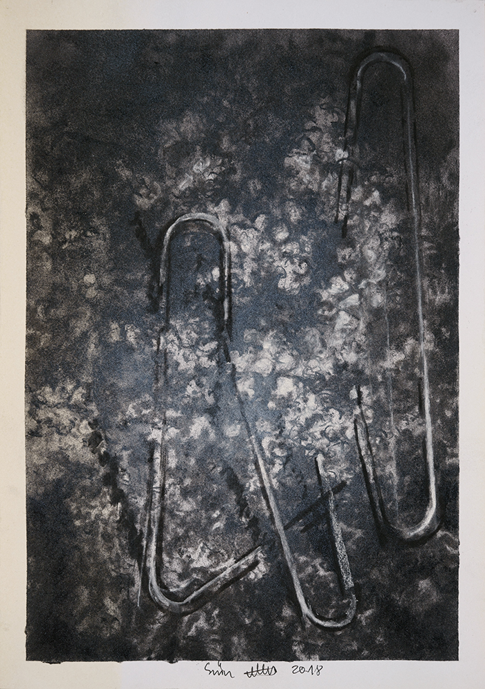 Drawing, graphite, charcoal and acrylic spray on paper, 49x54cm 2018 04 24