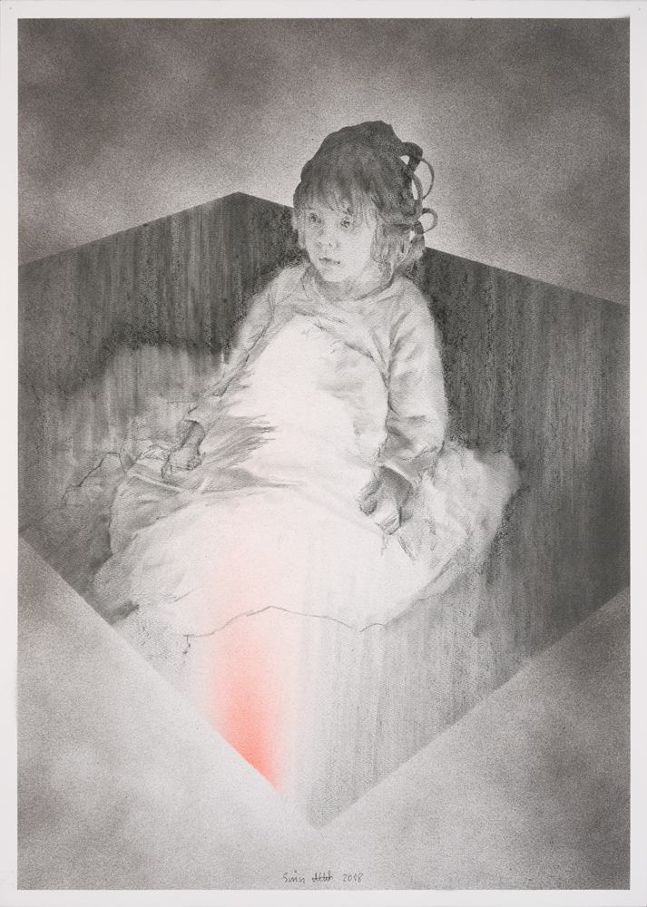 Drawing, graphite, charcoal and acrylic spray on paper, 59x42cm 2018 11 14