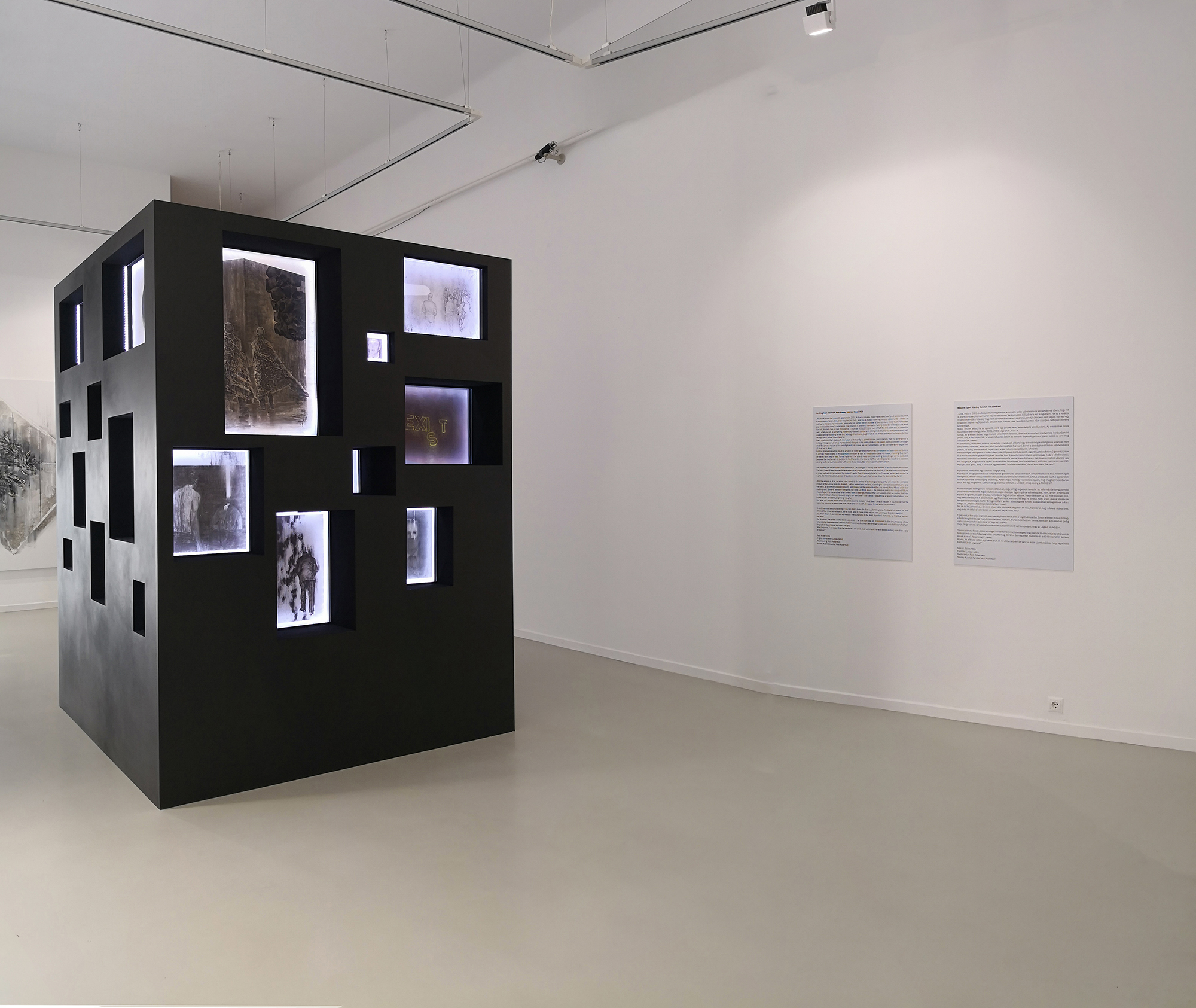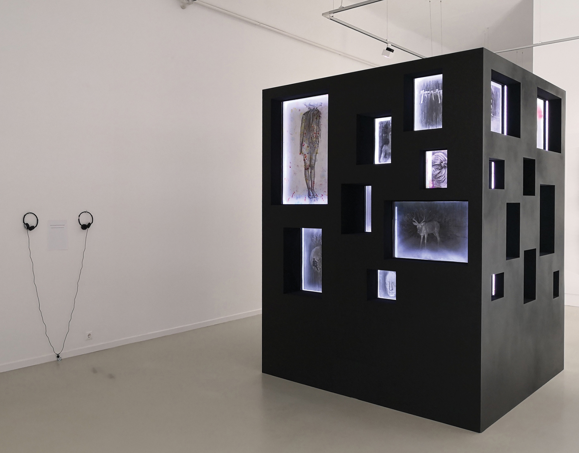Attila Szűcs, Inside the Black Box, 35 pieces of drawing installed in a 2x2x260cm cube, 2018 Panorama6