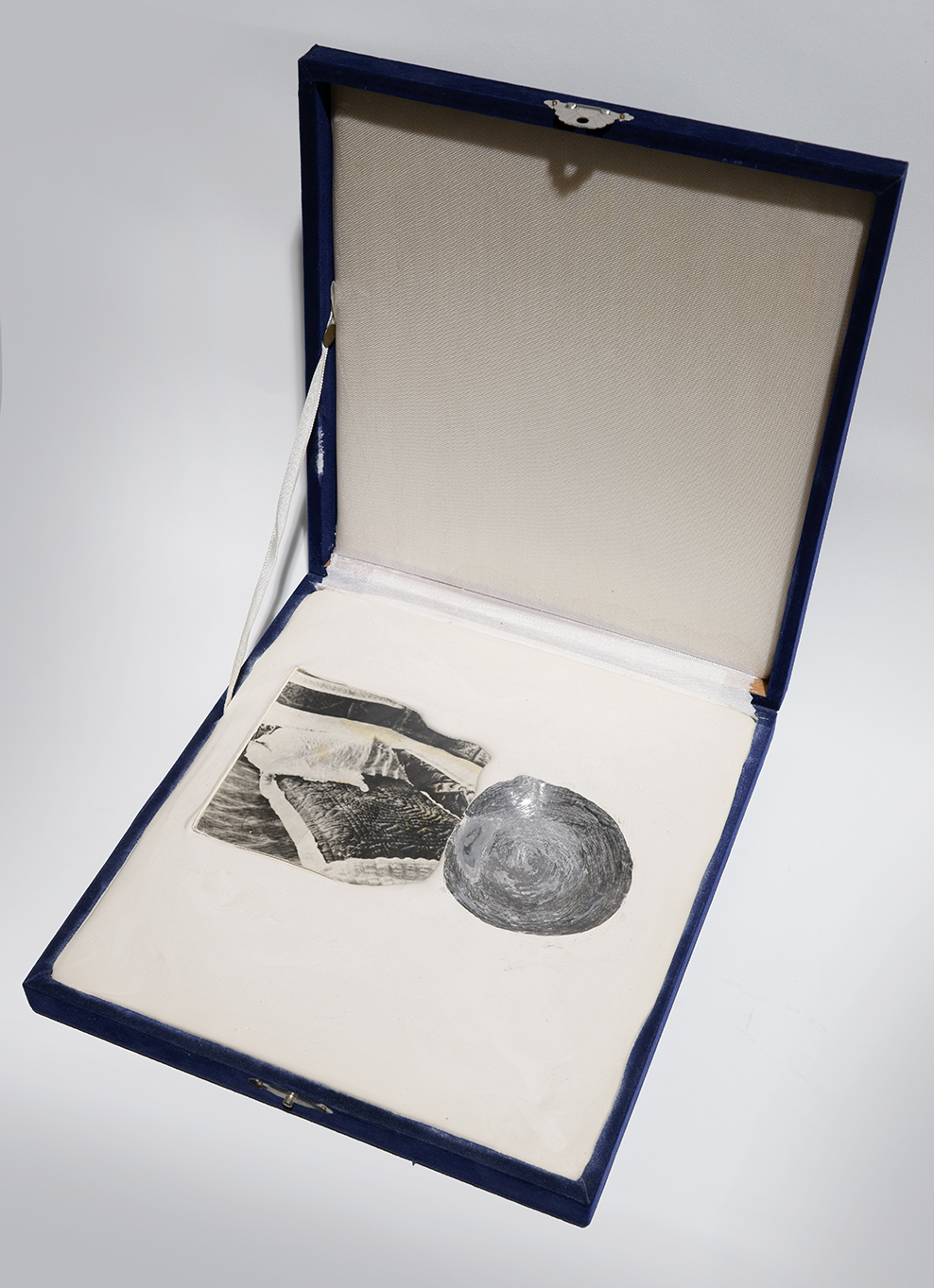 without title jewel-box , plaster, postcard, graphit 24x24x24cm1994