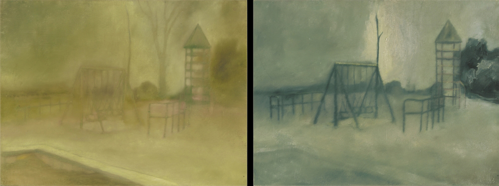 park with two simmetrical spots o,c. 150x200cm. 1996