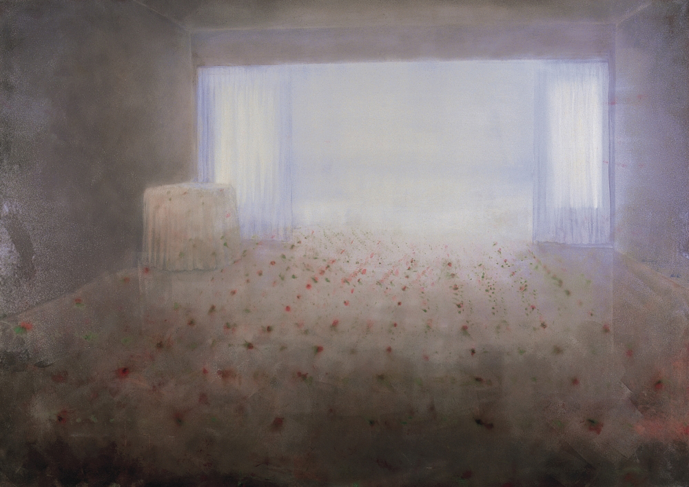 enterieur with burnt curtain o.c. 140x200cm 2000