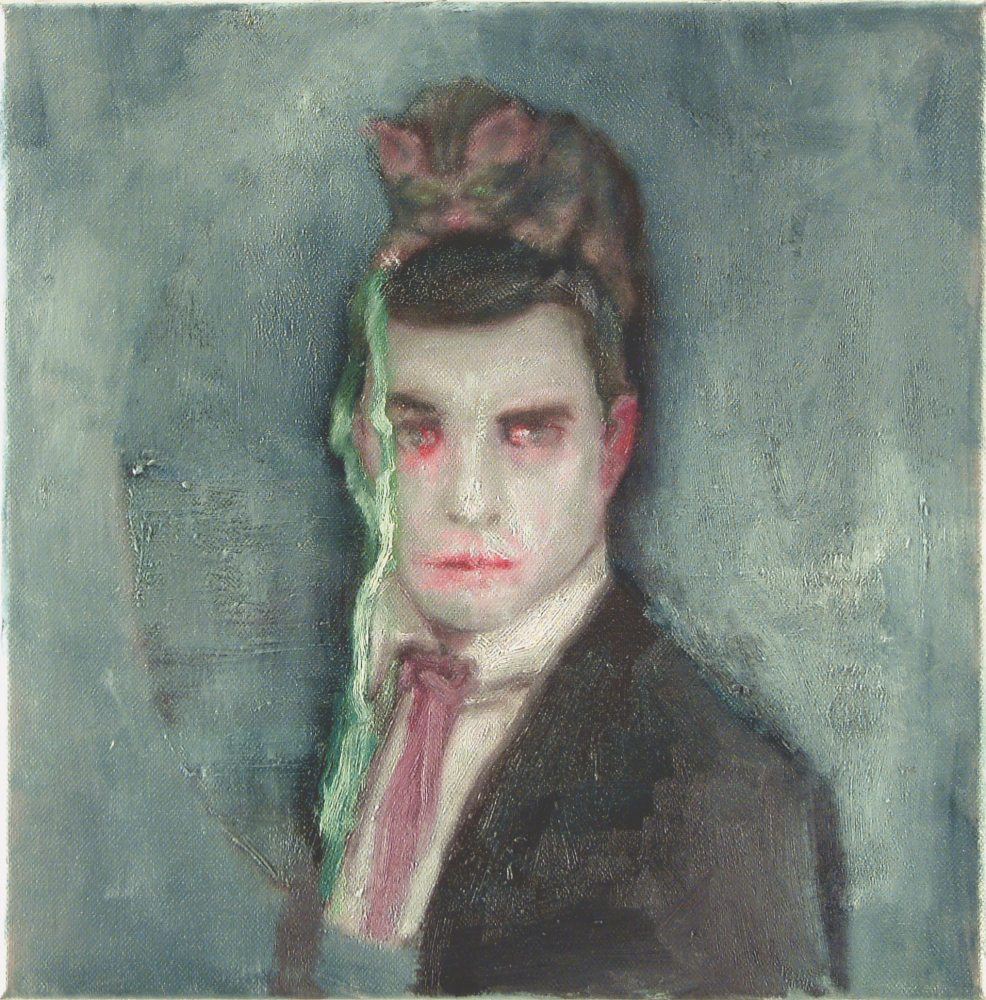 Buster Keaton with cat o.c. 30x30cm. 2002-2003