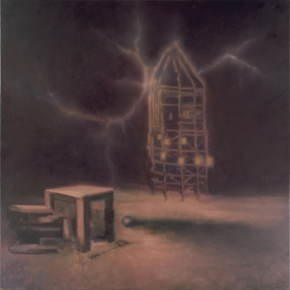 Buster Keaton with tripod o.c. 200x200cm. 2002