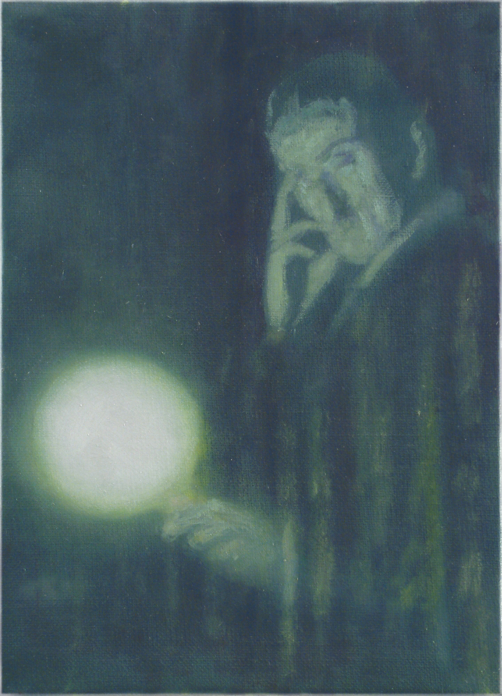 N.Tesla with lighting globe o,c. 71x51cm. 2005