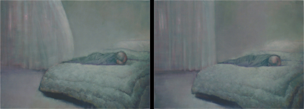 sleeping figure o,c. 100x280cm. diptichon 2005