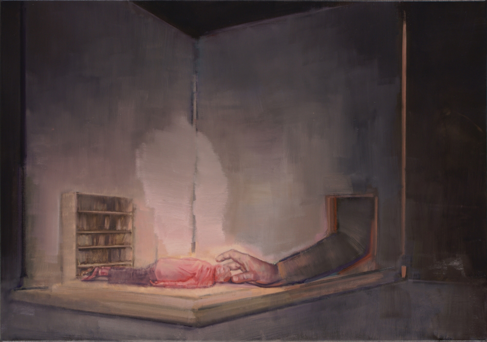 attila szucs, silent movie 3, oil on canvas mounted on board, 35x40cm. 2013