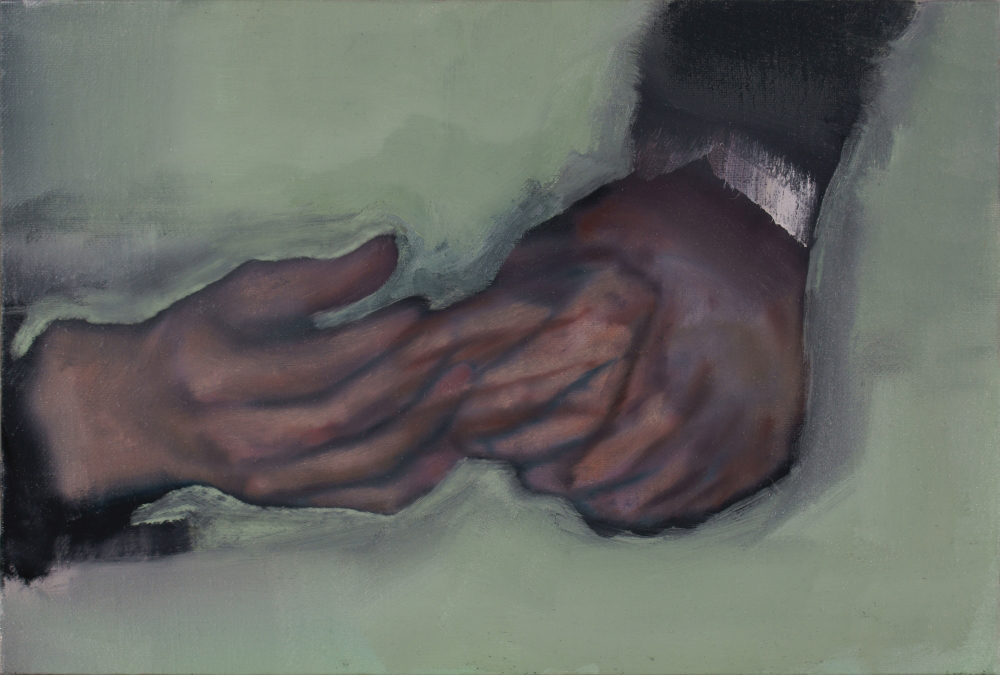 attila szucs, fuming hands, oil on canvas, 27x40cm. 2013