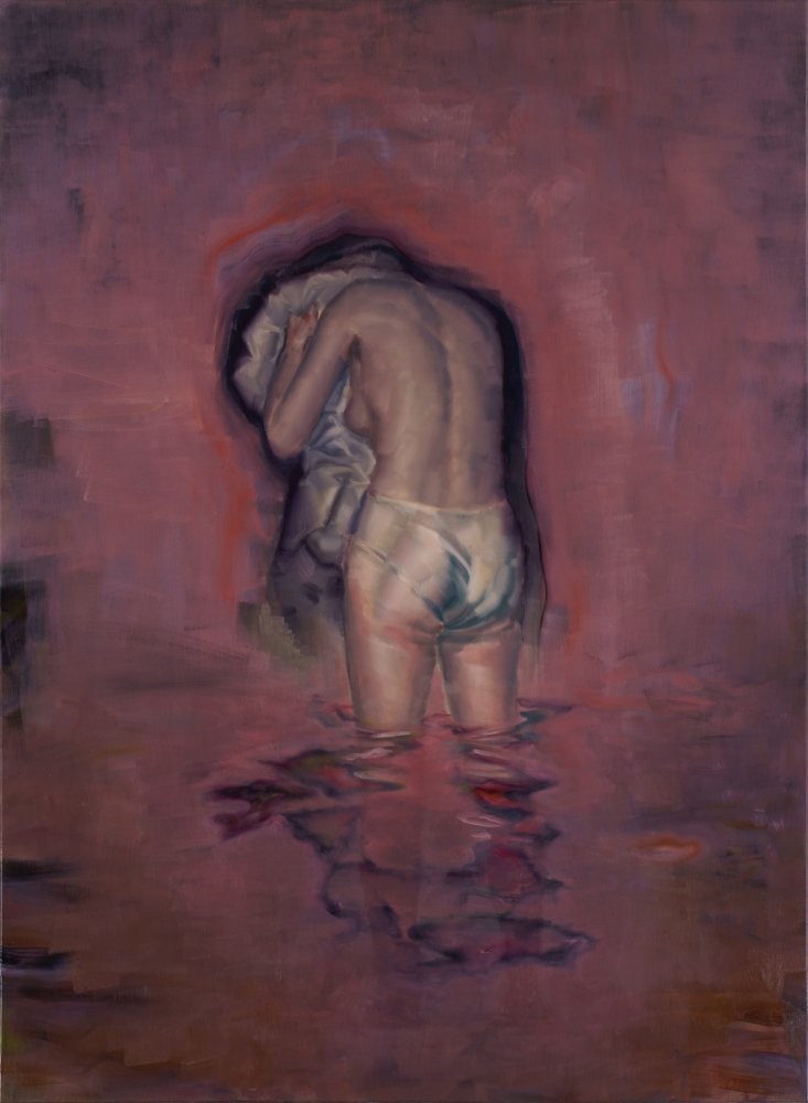 attila szucs, black swimsuit, oil on canvas, 70x100cm. 2013