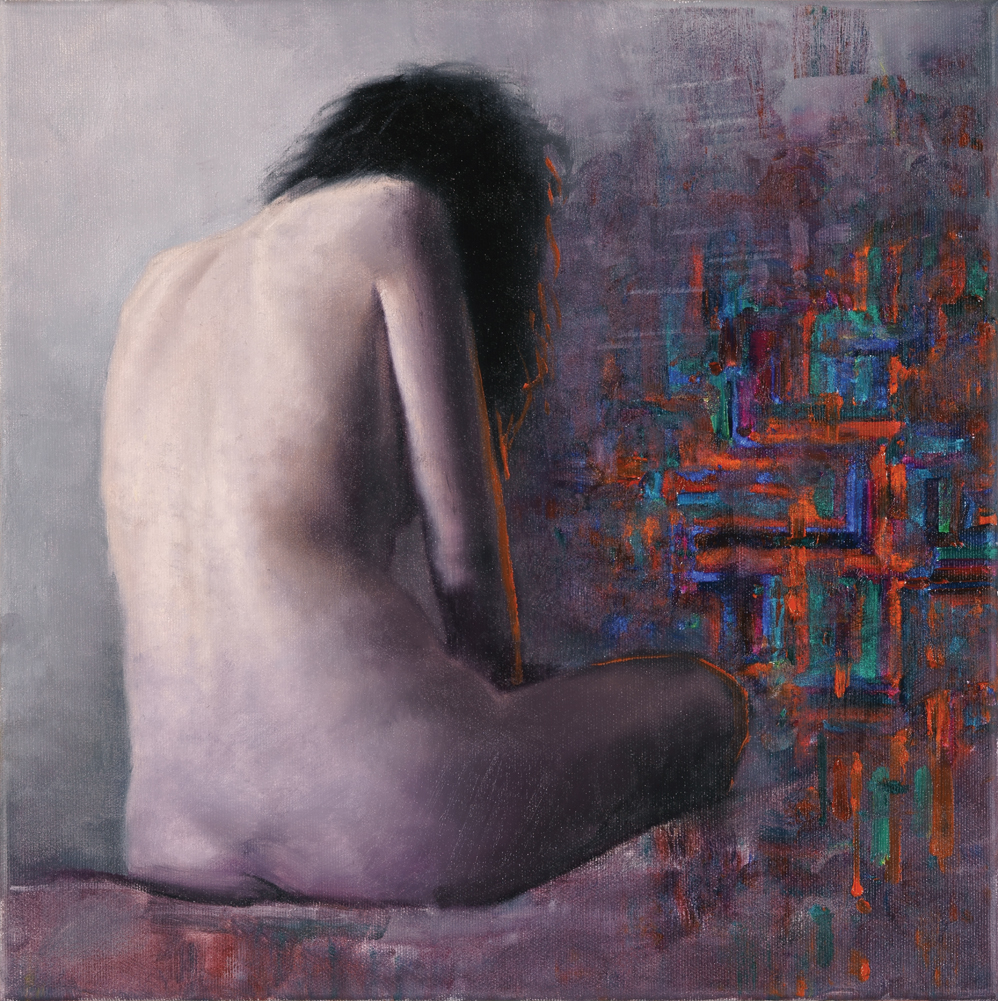 Woman with evolving pattern, oil on canvas, 40x40cm. 2016