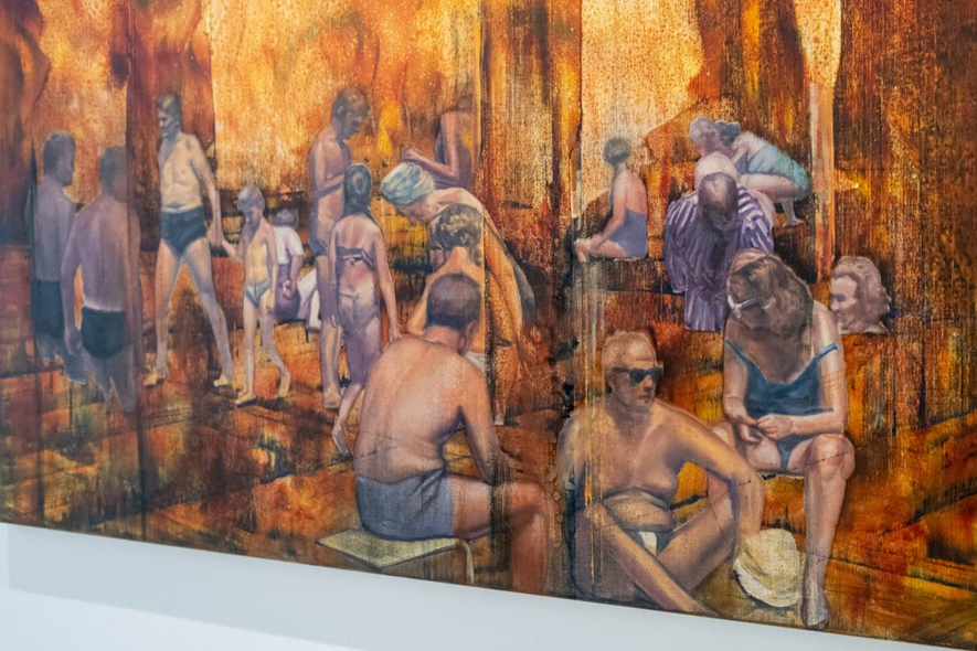 A képeken az emberi arcok és testek beleolvadnak a mű valóságába